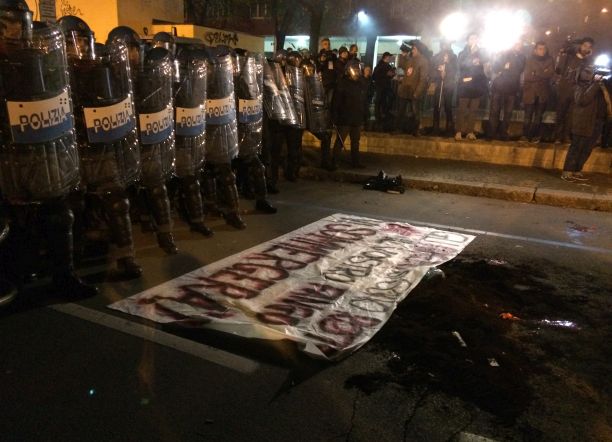 Marciando verso la zona universitaria, il corteo degli antagonisti è passato nelle vicinanze di un circolo del Partito democratico, in via Galliera. Una decina di attivisti, protetti da uno striscione, ha lanciato uova contro la serranda abbassata e rotto a colpi di casco il vetro delle bacheche che si trovano accanto alla porta del Passepartout. “Danni per circa mille euro” dice più tardi il segretario del circolo. “Violenza gratuita e vigliacca- dice il segretario provinciale Raffaele Donini-. Non fermeranno la nostra passione politica con queste intimidazioni”.