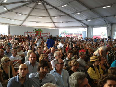 Una sala piena, di gente di ogni età, che in più di un’occasione ha riservato applausi scroscianti al sindaco rottamatore. Come quando, più di una volta, ha parlato di rinnovamento. “Il limite dei tre mandati è scritto nello statuto del Pd” scandisce il primo cittadino fiorentino, e l’applauso si fa ovazione. Battono le mani i giovani ma annuiscono anche i vecchi: “Parla proprio bene”.