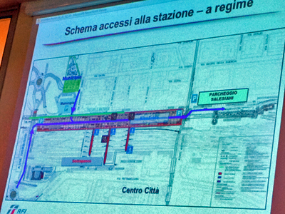 Secondo il progetto presentato oggi in commissione, a giugno verrà completata la stazione sotterranea, gli accessi e i sottopassi (44 scale mobili e 12 ascensori). Da quel momento, per prendere un treno ad alta velocità bisognerà scendere sotto terra. Nel dicembre 2013 dovrebbe essere pronto il “kiss and ride” (il bacia e corri): in sostanza una strada sotterranea di collegamento a senso unico, da via Bovi Campeggi a via Sebastiano Serlio, che scorrerà al di sotto dei sottopassi ma al di sopra dei binari. La nuova arteria sotterranea, per la cui realizzazione verrano create due nuove rotonde, una in via Bovi Campeggi e un’altra in zona Carracci, servirà anche ad accedere a due parcheggi: quello di piazza Liber Paradisus e quello già ultimato da Rfi vicino ai Salesiani.