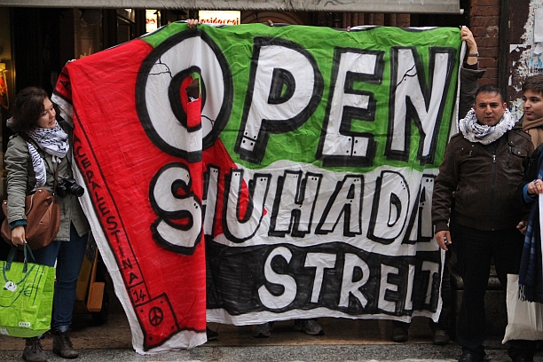 Bologna, 20 feb. – #Openshuhadastreet. Un presidio in via Indipendenza per dire ‘no’ alla chiusura di via Shuhada a Hebron, città palestinese della Cisgiordania dove da tempo si sono insediati 400 coloni israeliani. Non solo sono stati cacciati i palestinesi per fare spazio ai nuovi arrivati, ma ora è stata chiusa anche una strada centralissima, Shuhada Street appunto. “Ogni giorno i coloni ci attaccano, la strategia è quella di farci stancare e costringerci ad abbandonare le nostre case”, spiegano due attivisti palestinesi arrivati a Bologna negli scorsi giorni, Izzat Karaki e Jawad Abu Aisha. Con loro la pacifista Luisa Morgantini e una cinquantina di manifestanti. “Perché un presidio in via Indipendenza? Perché è come se a Bologna chiudessero questa via. Questo è quello che sta succedendo a Hebron, dove l’esercito ha ‘blindato’ la strada e vietato l’accesso ai non israeliani”, spiega Luisa Morgantini.