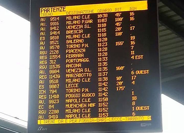 Al momento, si apprende da Ferrovie dello Stato, non è possibile prevedere quanto i ritardi si protrarranno, perché sono strettamente legati alla riduzione degli itinerari disponibili per i treni a lunga percorrenza provenienti dalla Puglia e dalle zone a sud di Napoli, strettamente legate ai fenomeni meteorologici in corso. I treni provenienti da Roma e da Napoli, invece, non sono interessati dai rallentamenti.