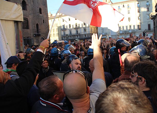 Bologna, 8 nov. – Sorridenti con la ruspa in spalla, ma anche pronti a scatenarsi alla vista dei contestatori no-Salvini. Alcuni portano nel cuore il sogno dell’indipendenza della “propria terra”, altri si dicono orgogliosamente nazionalisti e fascisti; i primi sventolano le bandiere dei “popoli padani”, i secondi il tricolore. Tutti sembrano avere una sola grande preoccupazione: “l’immigrazione selvaggia”.