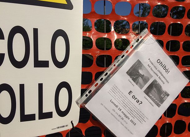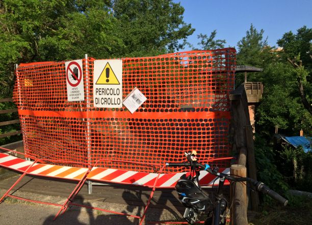 Il ponte è stato chiuso alla fine di aprile per via di un cedimento: un asse della pavimentazione della parte centrale è collassata e quindi, per ragioni di sicurezza, gli enti hanno deciso la chiusura del ponte. “Una misura eccessiva- dice Stefano Molnar, ciclista del Monte Sole Bike Group- forse si poteva transennare la parte lesionata e consentire comunque il transito. E’ una via fondamentale per raggiungere Bologna in sicurezza” spiega. Gli fa eco Oriano Caranti, memoria storica della Fiab bolognese: “Ora San Lazzaro è isolata, ciclisticamente parlando”. Le alternative per raggiungere in bicicletta Bologna non son delle più sicure: via Emilia e via Altura, con le loro rotonde a tre corsie, sono molto pericolose per i ciclisti.