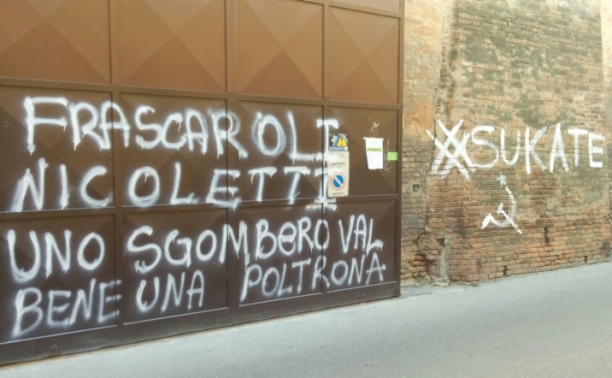 In mattina è arrivata anche la reazione di Amelia Frascaroli, che scrive in una nota: “Il nostro impegno è sempre stato quello di portare collaborazione e dare voce alle situazioni ‘di frontiera’ attraverso percorsi democratici. Chi imbratta la città in questo modo può trasmettere una sola idea di essa: ‘sporca’.