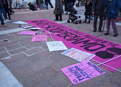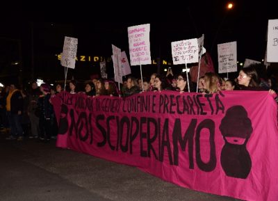 Dal microfono aperto le attiviste hanno espresso solidarietà alle lavoratrici di Yoox e ribadito le motivazioni dello sciopero: per l’autonomia e contro le frontiere, per un reddito di autodeterminazione e un permesso di soggiorno europeo senza vincoli. Ferme in mezzo al traffico bloccato, hanno preso parola anche per rispondere alla neo eletta senatrice Lucia Borgonzoni, contestata in piazza questa mattina: “Avevamo detto che non saremmo state strumentalizzate e così è stato”.
