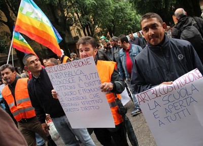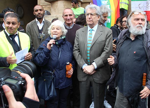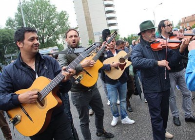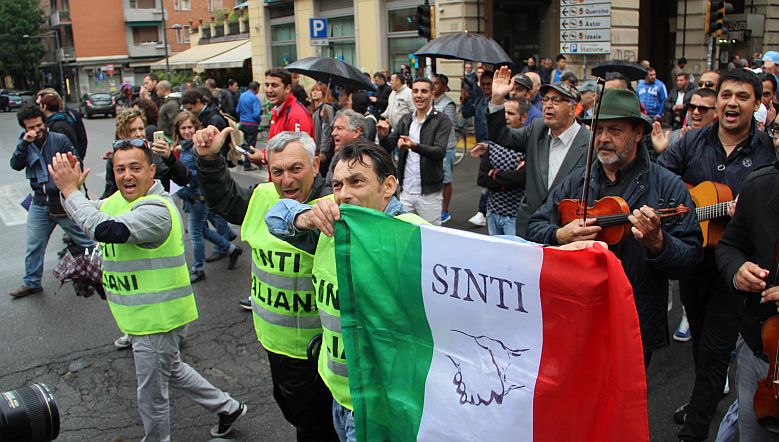 Dei 400 manifestanti che hanno sfilato partendo via Gobetti (dove nel 1990 i banditi della Uno Bianca spararono all’impazzata contro l’allora campo sinto facendo morti e feriti) solo 200 erano rom e sinti, quasi tutti uomini. Ad accompagnarli altrettanti gagé, cioè tutti coloro che rom e sinti non sono. Associazioni, centri sociali, ma anche politici. In corteo i senatori Pd Sergio Lo Giudice e Luigi Manconi (in rappresentanza del presidente del Senato Grasso), il parlamentare di Sel Giovanni Paglia, la sua collega Pd Sandra Zampa, l’assessore bolognese Amelia Frascaroli, e ancora consiglieri comunali, artisti come Alessandro Bergonzoni e Ivano Marescotti, semplici cittadini.