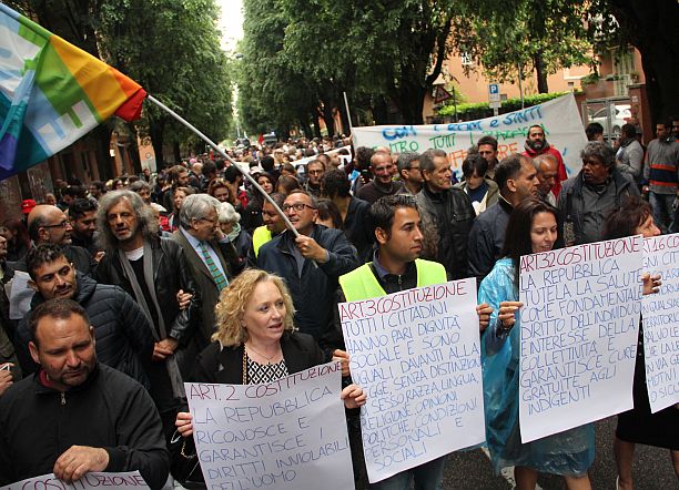 Bologna, 16 mag. – Tricolori e cartelli con gli articoli della Costituzione. Un banda musicale ad aprire il corteo con musica e canti. A Bologna hanno sfilato in 400 per la manifestazione nazionale dei rom e sinti. Arrivati in città da tutto il nord Italia, i manifestanti hanno marciato in una data non causale. Il 16 maggio è l’anniversario della rivolta del 1944, quando i rom e i sinti rinchiusi nei campi di concentramento tedeschi si ribellarono alle SS. “Sfiliamo per evitare un nuovo olocausto”, dice Davide Casadio, organizzatore della manifestazione e presidente della “Federazione Rom e Sinti insieme”. Casadio non ha paura di un nuovo massacro, ma di “olocausto culturale e sociale sì”. La propaganda anti rom, i servizi manipolati trasmessi in tv, la campagna mediatica delle destre, tutti elementi che hanno portato le organizzazioni di rom e sinti a lanciare una manifestazione nazionale per reclamare diritti, tutele e riconoscimento. “Salvini è un razzista – attacca Casadio – Anche noi vogliamo la chiusura dei campi, non li abbiamo mai voluti. Ma le ruspe no, non le vogliamo, quelle Salvini se le può tenere a casa sua”.