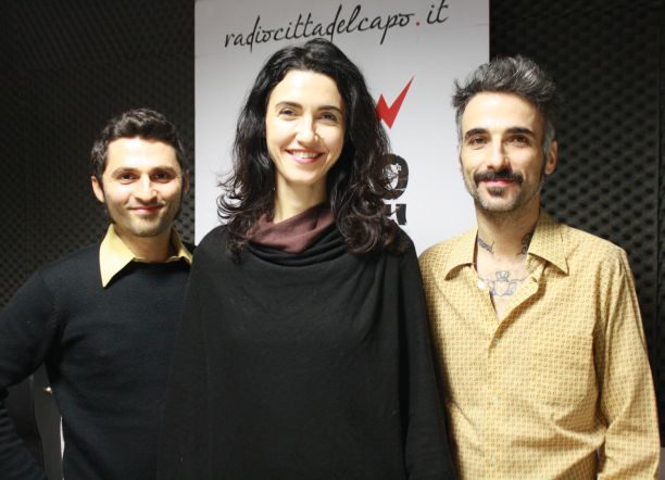 24 feb. – Abbiamo lanciato un concorso in onda: in palio c’era un vinile (o cd) di Hexagon Garden, l’ultimo disco dei Melampus. La sfida per gli ascoltatori era di indovinare il legame logico tra i titoli dei dischi della band bolognese: Ode Road, #7 e l’album che Francesca Pizzo e Gelo Casarrubia hanno presentato nei nostri studi con un live. Sorpresa (e beffa): è stato il membro aggiunto della band, Luigi Russo (a sinistra nella foto) a dire candidamente: “Insieme i tre titoli formano un indirizzo“. E vi assicuriamo, dalle facce di Francesca e Gelo, che Luigi non conosceva la risposta. Mistero svelato, insomma, dall’interno, con la band che (immaginiamo) sarà costretta nel prossimo disco a svelare la città per completare queste “indicazioni”.