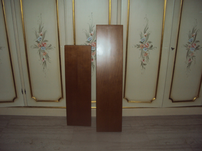 Due mensole color legno ciliegio, da incassare al muro, comprese di tasselli.