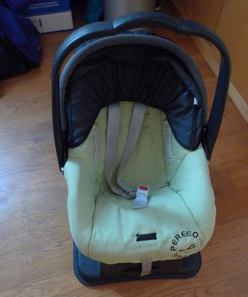 Il seggiolino di Tullo: “Seggiolino Peg Perego primo viaggio, per portare in auto bambini da 0 a 13 kg, in buono stato”.
