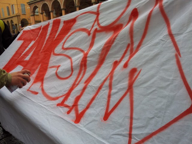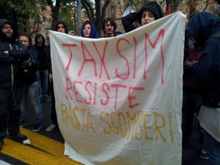 Alle prime luci dell’alba carabinieri e polizia si sono presentati in forze all’incrocio tra via Irnerio e via De Rolandis. Diverse camionette e decine tra agenti e militari hanno presidiato l’ingresso principale dello stabile su via Irnerio mentre un altro gruppo è entrato da via De Rolandis, passando per un terrazzo. Fino a poco prima delle 10, gli 11 attivisti che erano dentro il Taksim hanno resistito seduti per terra, poi sono stati portati fuori dagli agenti. Un ragazzo è stato trascinato per terra.