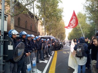 Bologna, 1 ott. – Manganellate, cori e spintoni in via Irnerio per lo sgombero dello stabile di proprietà della Fondazione Lercaro occupato la scorsa settimana dagli attivisti del Collettivo Universitario Autonomo.
