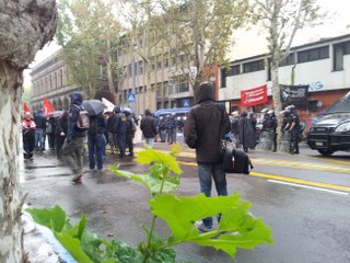 In strada, fin dalle prime ore, si è radunato un gruppo di alcune decine di manifestanti in solidarietà con gli occupanti. Il presidio di solidarietà, rimasto in un primo tempo sul marciapiede di via Irnerio, si è poi spostato in mezzo alla strada bloccando il traffico. Dopo lo sgombero, il presidio si è trasformato in corteo fino al cuore della zona universitaria, piazza Verdi, dove il Cua ha montato un gazebo per pubblicizzare le proprie iniziative in vista dello sciopero sociale del 16 ottobre prossimo.