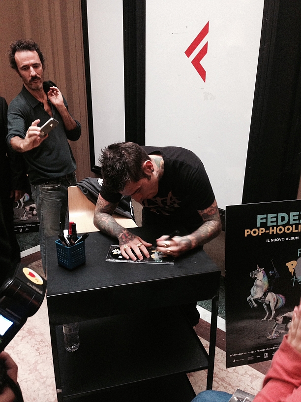 Ad aspettarlo, nella galleria dietro alla libreria, un bagno di folla. Tra signore ultrasessantenni che sgomitavano in prima fila e malori improvvisi di ragazzine emozionate alla vista del loro idolo, Fedez spopola anche sotto le Due Torri. “Pop-Hoolista”, già disco d’oro con oltre 25.000 copie vendute nei primi sette giorni dall’uscita, è il titolo del suo nuovo album.
