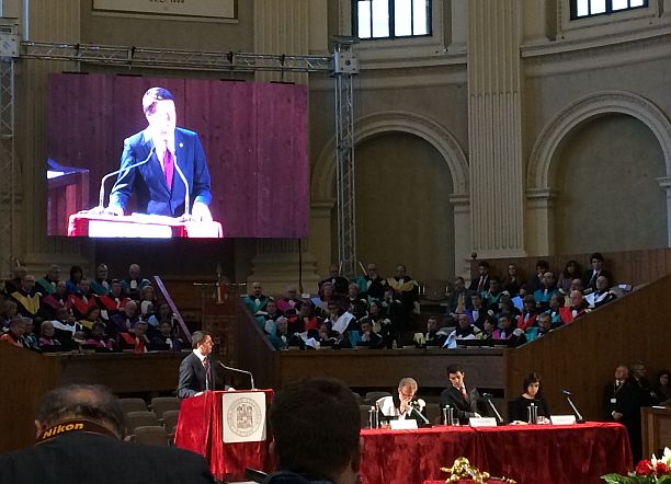 Impegnato nell’inaugurazione di un nuovo stabilimento della Granarolo a Cadriano, Renzi arriva in via Castiglione con un po’ in ritardo sulla tabella di marcia. E’ lui l’ospite d’onore per l’inaugurazione dell’ultimo anno accademico dell’era Dionigi. E insieme al latinista, che qualcuno vorrebbe sindaco di Bologna, percorre la navata diretto al palco. Circa a metà del percorso parte timido un applauso dalle fila composte che attendono che la cerimonia abbia inizio: professori, studenti, tecnici e personalità varie. Mentre il Rettore, insieme al rappresentante degli studenti e quella del personale tecnico amministrativo raggiungono il palco, il presidente del Consiglio si siede in prima fila, accanto al neo presidente della Regione Emilia Romagna, Stefano Bonaccini.