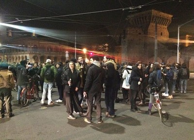 Come da tradizione l’assemblea non ha avuto un momento di voto, si è conclusa con una serie di appuntamenti che segneranno il probabile fronte della protesta. A cominciare dalla mobilitazione nazionale di domani giovedì 16 lanciata giorni fa dal Cua. Proprio il collettivo ha portato gli studenti, alla fine dell’assemblea, a sfilare alle 11 di sera per i viali bloccando il traffico e passando accanto alla casa di una studentessa agli arresti domiciliari dopo il corteo e la carica di venerdì in via Zamboni. Poi il ritorno del corteo in Piazza Verdi, con gli attivisti del Cua che si sono abbracciati. “È la nascita di qualcosa di nuovo? Lo dirà solo il tempo”, commenta una trentenne che ha visto l’ultimo grande ciclo di manifestazioni, e cioè l’Onda del 2008-2010. “L’Onda era molto diversa – dice un altro veterano – lì tutti erano molto politicizzati e difendevano l’università, qui invece c’è una protesta per ora solo bolognese che nasce da un’irruzione delle celere, e ancora discutiamo sui tornelli”. Le forze dell’ordine sono state sempre presenti a pochi passi da via Zamboni 38, e quando il corteo notturno è tornato in Piazza Verdi per sciogliersi è dovuto passare tra i carabinieri e i poliziotti schierati in assetto anti sommossa.