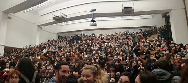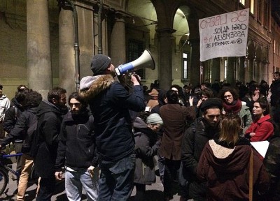 Bologna 15 feb. – C’è lo studente di lettere, ventitré anni appena compiuti, che quando parla dell’assemblea con i suoi compagni di corso gli si illuminano gli occhi, perché “io una cosa così non l’avevo mai vista”. C’è la studentessa francese che racconta della differenza tra le sue, di assemblee, e quelle italiane. “In Francia e in Canada dove sto studiando votiamo, ma qui non è poi così diverso e poi mi sembra vada bene così”. E c’è anche la matricola, ventenne fuori sede da pochi mesi a Bologna, che si è visto descrivete in tv come un teppista e ora “con voi giornalisti non ci parlo più: avete detto che la biblioteca l’hanno distrutta gli studenti e invece è stata la celere”. Tre voci e tre volti tra i seicento che ieri sera si sono visti nell’aula 3 di Lettere, in via Zamboni 38. A pochi passi dalla biblioteca del 36, sgomberata dalla celere pochi giorni fa e ancora chiusa. In un’aula 3 strapiena tanto che alla fine si è riempita anche l’auletta 2 accanto, i seicento studenti si sono confrontati sulla questione tornelli (su cui c’è stato molto dibattito) e sull’irruzione delle celere (condannata all’unanimità), ma soprattutto hanno dibattuto e ragionato “su quello che è solo un simbolo”, ha detto qualcuno. Un simbolo, hanno spiegato gli attivisti del Collettivo universitario autonomo presente al gran completo, che è stato affrontato (e rimosso fisicamente durante un’azione di protesta) perché parlare di tornelli vuol alludere a precarietà, austerity, e a una città come Bologna “che sfrutta gli studenti lasciandoli ai margini”.