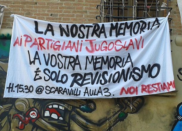 Gli attivisti di Noi Restiamo ci tengono a non essere identificati come negazionisti. “Non neghiamo certo quello che è successo, semplicemente vogliamo leggere il fenomeno nel suo contesto”, spiega Francesco. Su facebook il collettivo specificata meglio la propria posizione storiografica (e ovviamente anche politica) sulle foibe: “Oggi 10 febbraio, giorno che da qualche anno le istituzioni hanno deciso di dedicare al revisionismo storico sui fatti intorno all’espansione imperialista che l’allora Regno d’Italia compiva sul suo confine Nord-Orientale ai danni della popolazione slava, il professore Renzo Orsi, preside della Scuola di Economia, Management e Statistica dell’Università di Bologna ha pensato bene di iniziare la giornata affermando di voler negare la concessione di un’aula della Scuola da lui presieduta, nella quale è regolarmente prevista un’iniziativa di approfondimento storico, di informazione e dibattito proprio su queste tematiche”.