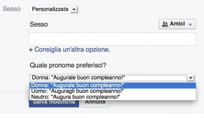 La funzione è già attiva, ma per ora la dicitura utilizzata non è “genere” ma “sesso”, termine solitamente associato a quello biologico, a differenza invece delle pagine anglosassoni.