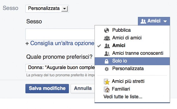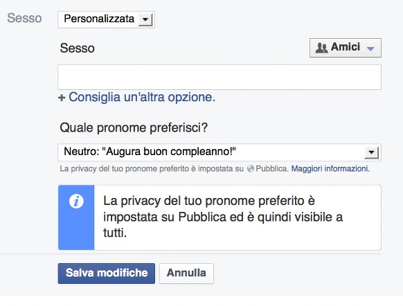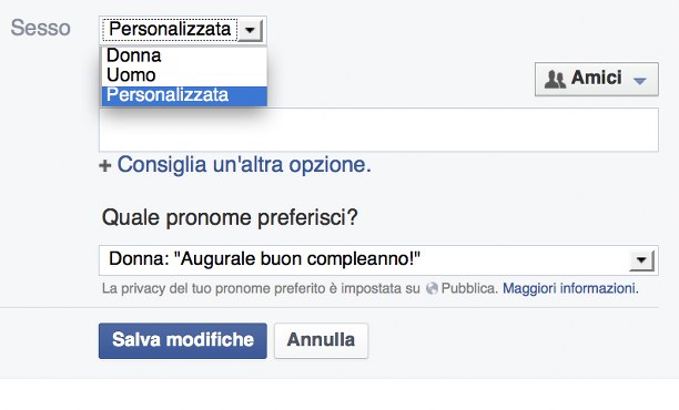 La funzione è già attiva, ma per ora la dicitura utilizzata non è “genere” ma “sesso”, termine solitamente associato a quello biologico, a differenza invece delle pagine anglosassoni.