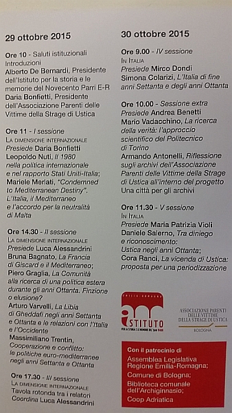 La Regione Emilia -Romagna ha dato il proprio contributo al convegno cofinanziando una ricerca di studio sulla strage di Ustica realizzata da giovani laureati.