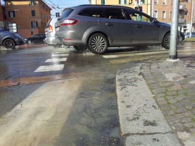 Un artigiano che stava raggiungendo la sua attività in via Andrea Costa ha attraversato la strada quando la perdita di acqua era iniziata da poco e racconta quello che ha visto
