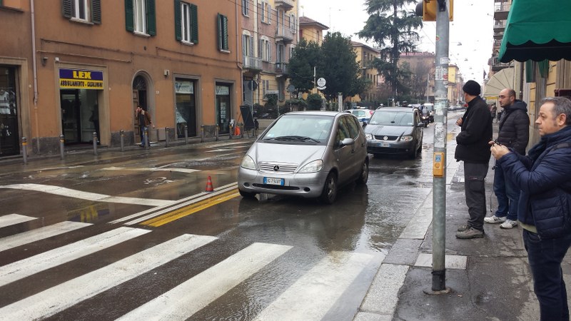 Un artigiano che stava raggiungendo la sua attività in via Andrea Costa ha attraversato la strada quando la perdita di acqua era iniziata da poco e racconta quello che ha visto