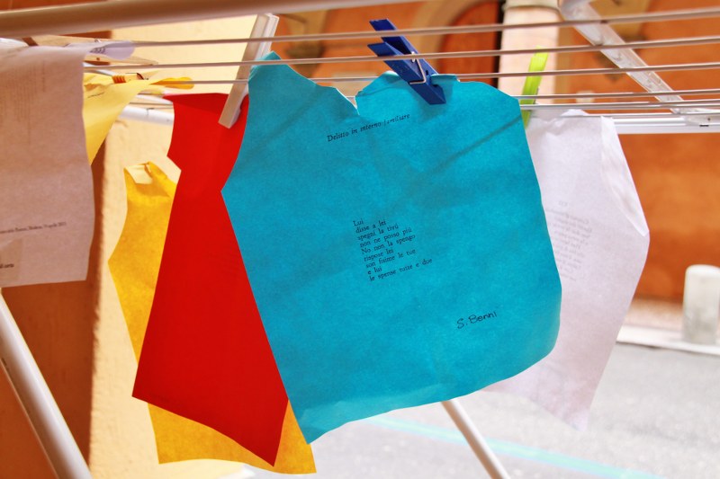 Sono passati tre giorni dall‘allestimento poetico della via organizzato dall’associazione culturale “Tutto in un punto” e i versi, selezionati insieme al Movimento per l’Emancipazione della Poesia e alle riviste letterarie Fischi di Carta e FornofiliaeFilatelia, a distanza di giorni sventolano ancora.