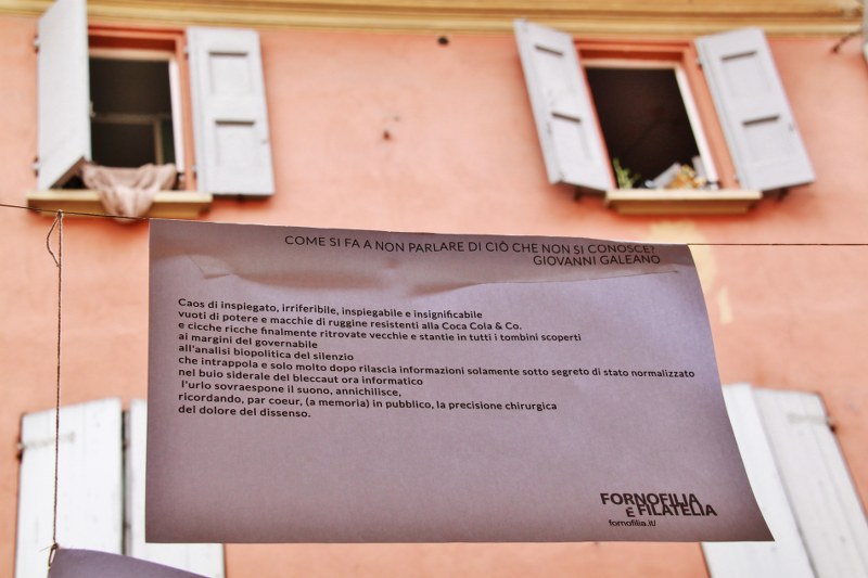 Bologna, 27 mag. – Dal 24 maggio a “finché dura la Poesia”,come scrive la rivista FornofiliaeFilatelia, via Fondazza sarà un’esposizione di versi a cielo aperto.