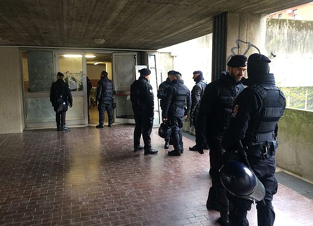 “Ecco questo enorme dispiegamento di forze pagato con i soldi di tutti – si legge sulla pagina facebook dei Giovani di Rifondazione – per chiudere una palestra che dopo 7 anni era stata riaperta e restituita agli inquilini delle case popolari di via Gandusio. Vogliamo che la palestra venga riaperta da domani con le attività gratuite che erano già state programmate dagli inquilini!”