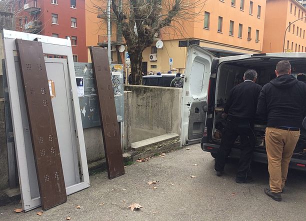Ad osservare lo sgombero un gruppo di anziani pensionati inquilini Acer da decenni in via Gandusio. “Una volta questo posto era d’oro, adesso è tutto degradato”.