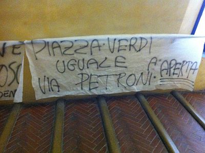 10 apr. – I gestori del Cafè de Paris e del Bar Balanzone di via Petroni si sono incatenati questa mattina al corrimano dello scalone di palazzo d’Accursio. “Non siamo locali ribelli. Vogliamo solo lavorare” dice Massimiliano Bolelli del Balanzone. Insieme ai colleghi del Cafè de Paris e del Cafè Petroni, ha ricevuto ieri la notizia della sospensione temporanea della licenza decisa dal Comune. Per questo chiede di incontrare il sindaco Virginio Merola e minaccia di non andarsene fino a quando non sarà ricevuto.