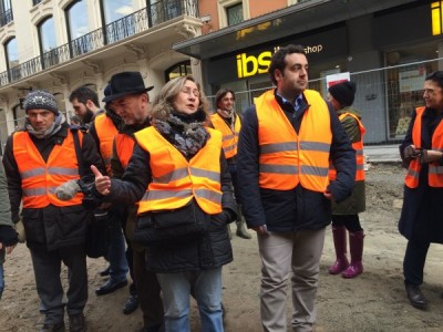 In occasione dell’inaugurazione della terza fase del cantiere, che porterà operai e ruspe a scavare su via Ugo Bassi, l’ingegner Monzali, insieme a Colombo e alla presidente di Tper Giuseppina Gualtieri, ha guidato la stampa al di là delle reti di via Rizzoli. A far da cicerone, spiegando la consistenza dei ritrovamenti effettuati dagli archeologi di Phoenix, è stata la dottoressa Renata Curina della soprintendenza per i beni archeologici dell’Emilia Romagna.