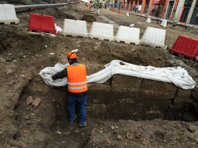 Tolti i basoli, rimosse le povere macerie delle casupole medievali abbattute attorno al 1910 e utilizzate come fondo per la costruzione della via, le ruspe di coop Costruzioni si sono messe a scavare sotto l’occhio vigile degli archeologi (in cantiere grazie ad un accordo tra Tper e Soprintendenza). E così, poco a poco, sono tornate alla luce mura di mattoni, blocchi di pietra più grandi, vecchie condotte di metallo e scanafossi di pietra. Secoli di urbanistica bolognese, un libro aperto per archeologi e studiosi. Un libro noto: nulla di sorprendente, spiega Curina, quasi tutto previsto. Nonostante questo, sempre affascinante e utile per aggiungere conoscenza alla conoscenza. E’ per questo che, dopo i rilevamenti degli archeologi, la catalogazione dei reperti e una dettagliata documentazione fotografica, i ritrovamenti verranno nuovamente interrati.