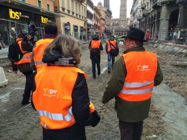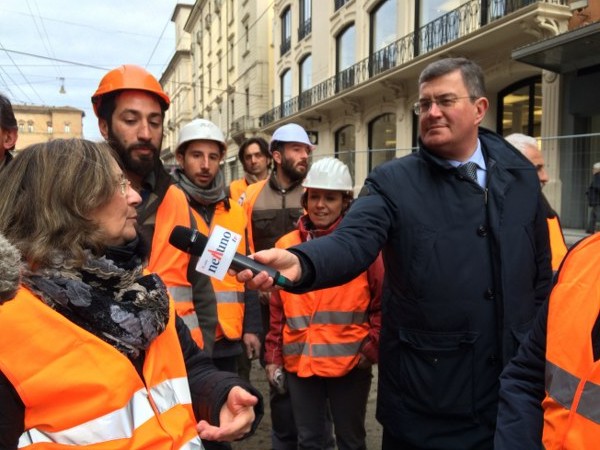 In occasione dell’inaugurazione della terza fase del cantiere, che porterà operai e ruspe a scavare su via Ugo Bassi, l’ingegner Monzali, insieme a Colombo e alla presidente di Tper Giuseppina Gualtieri, ha guidato la stampa al di là delle reti di via Rizzoli. A far da cicerone, spiegando la consistenza dei ritrovamenti effettuati dagli archeologi di Phoenix, è stata la dottoressa Renata Curina della soprintendenza per i beni archeologici dell’Emilia Romagna.