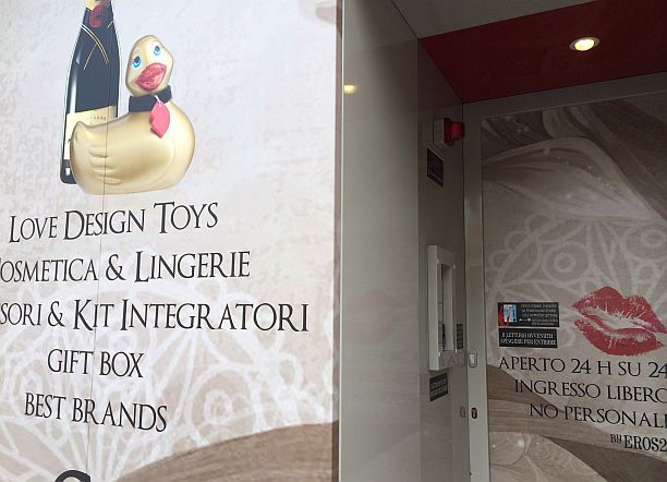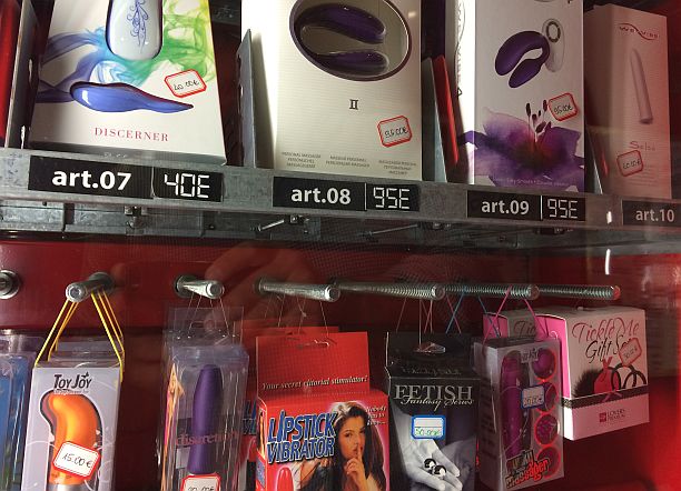 All’interno, sotto l’occhio vigile di alcune telecamere, ci sono quattro macchinette automatiche con tutto il necessario per divertirsi, in solitaria, in coppia o anche a squadre. Dalle manette alla lingerie, dai vibratori ai dildo, tutto è acquistabile, non proprio a buon mercato.