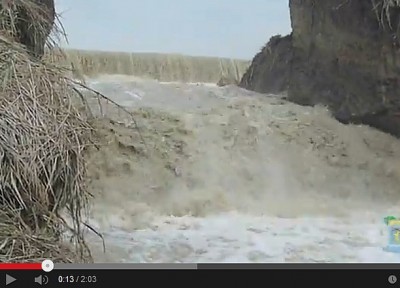 Il video è stato girato ieri, 5 marzo, dai tecnici della Provincia di Bologna, ed è impressionante. Le immagini mostrano uno squarcio nell'argine del torrente Quaderna. -