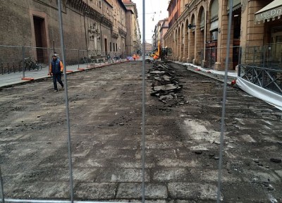 Cantiere BoBo. In via Rizzoli la posa del primo basolo