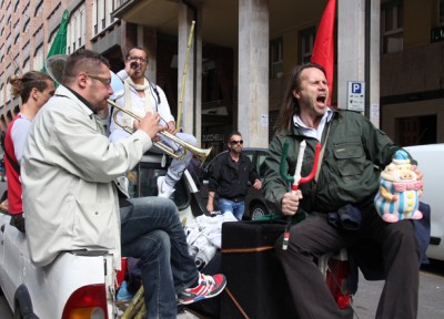 Hanno messo in scena il "funerale del sindacato" con spargimento delle ceneri vicino alla Cgil. Tra gli interventi volgarità e molta confusione