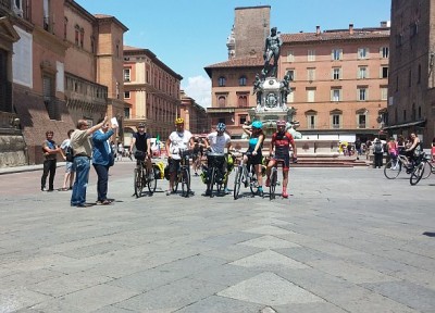 Annamaria Cecaro è partita da piazza Maggiore in sella alla sua bicicletta, diretta a Napoli. Il suo obiettivo è raccogliere 30.000 euro per creare parchi giochi fruibili anche dai bambini disabili -