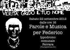 Sabato 22 settembre all'Ippodromo di Ferrara ci sarà "Parole e musica per Federico", per ricordare il ragazzo ucciso sette anni fa durante un controllo di polizia. -