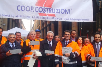 Il sindaco Merola poggia l'ultima pietra del cantiere BoBo di Strada Maggiore -