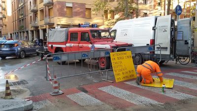 Tecnici Hera al lavoro per l'ennesima rottura di un tubo dell'acqua. I vigili del fuoco svuotano le cantine allagate -