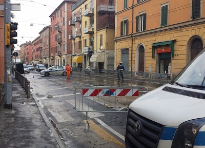 Via Andrea Costa. Ancora bus deviati dopo il tubo rotto