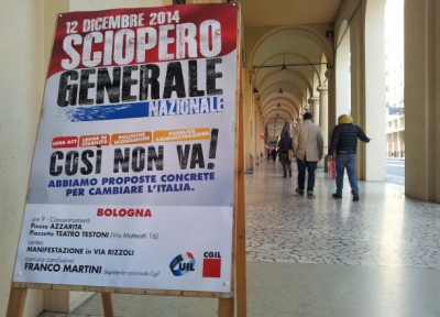 Venerdì 12 dicembre in Emilia-Romagna 11 manifestazioni nel giorno della protesta nazionale contro il governo Renzi -