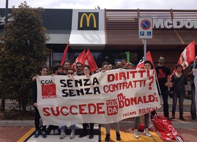 Alla protesta internazionale partecipano i lavoratori italiani di McDonald's e Autogrill, in sciopero nazionale il 16 maggio. Presidi anche a Bologna -
