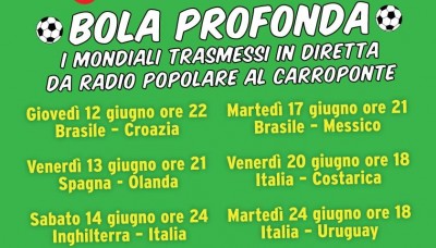 Gli appuntamenti dei Mondiali di calcio a Bola Profonda, in onda sulle nostre frequenze