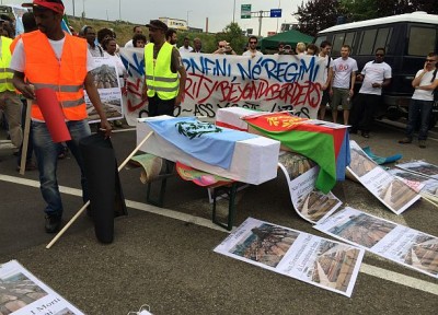 Alcune decine di manifestanti, provenienti da tutta Europa, hanno manifestato davanti ai cancelli del Parco nord contro il festival organizzato dal governo di Asmara. Con loro anche Tpo, Làbas e... -