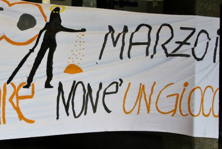 Flash mob di Santa Insolvenza. Pasta al pomodoro e reddito minimo