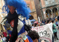 Un centinaio di adepti di Santa Insolvenza e studenti hanno manifestato davanti alla sede dell'Atc di via Lame e di piazza Re Enzo. I manifestanti chiedono l'apertura di un tavolo sulla mobilità. -